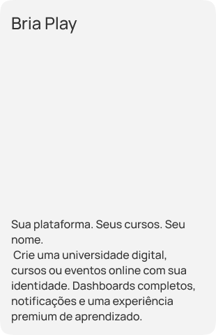 Com BriaPlay, você cria cursos, eventos online ou uma universidade corporativa em minutos com área de membros, analytics e notificações personalizadas.