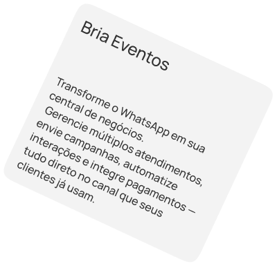 Com o Bria Chat, você centraliza o atendimento via WhatsApp com automações IA, distribuição inteligente, tags e relatórios. Escalabilidade no suporte, com a sua identidade.
